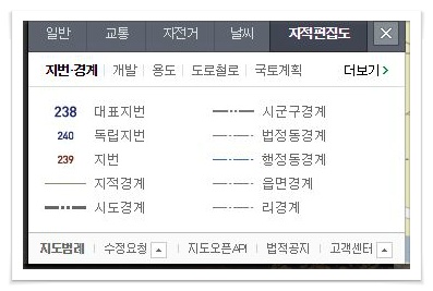 네이버지도 상에서 좌측 하단에 보시게 되면 지도범례 라고 되어 있는 부분이 있습니다.